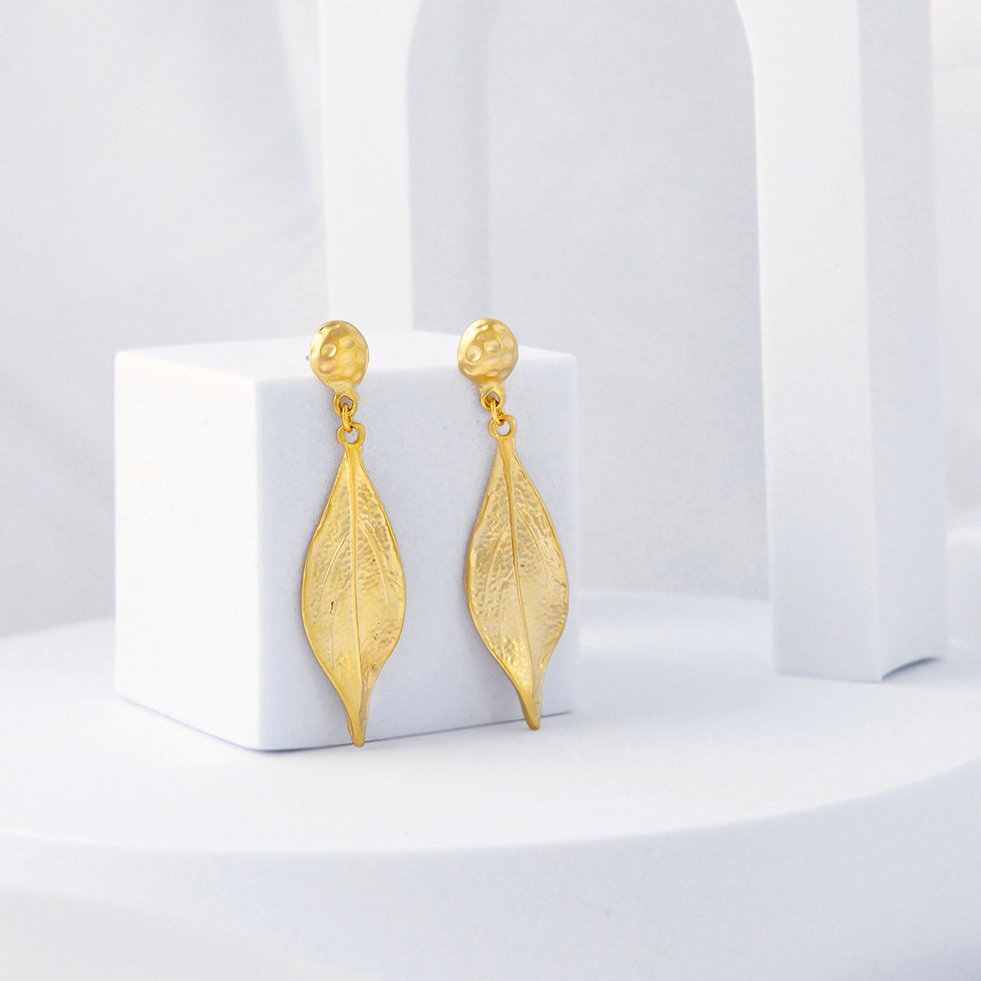 Delicados pero con presencia. Un botón texturizado arriba y una hoja alargado que cae con gracia. Son el largo perfecto: lo suficientemente largos para estilizar, lo suficientemente discretos para usar todos los días. Ligeros y con ese toque especial que transforma cualquier outfit.